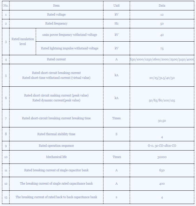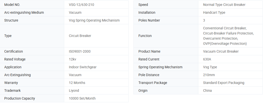 ভিএসজি টাইপ ইনডোর হাই-ভোল্টেজ ভ্যাকুয়াম সার্কিট ব্রেকার জাতীয় স্ট্যান্ডার্ড জিবি 1984 "এসি হাই-ভোল্টেজ সার্কিট ব্রেকার", জেবি/টি 3855 "3.6 ~ 40.5 কেভি ইনডোর এসি উচ্চ-ভোল্টেজ ভ্যাকুয়াম সার্কিট ব্রেকার" এবং আইইসি 60056 "উচ্চ-ভোল্টেজ অ্যাকার" এর সাথে সম্মতি জানায়। "10-35 কেভি ইনডোর উচ্চ ভোল্টেজ ভ্যাকুয়াম সার্কিট ব্রেকার প্রযুক্তিগত শর্ত অর্ডার করে" এর সাথে দেখা করুন। এটিতে ছোট আকার, হালকা ওজন, ঘন ঘন অপারেশনের জন্য উপযুক্ত এবং রক্ষণাবেক্ষণ ছাড়াই বাধাগ্রস্ত করার সুবিধা রয়েছে এবং এটি 3KV-40.5KV বিতরণ নেটওয়ার্কে আরও জনপ্রিয়ভাবে ব্যবহৃত হয়।