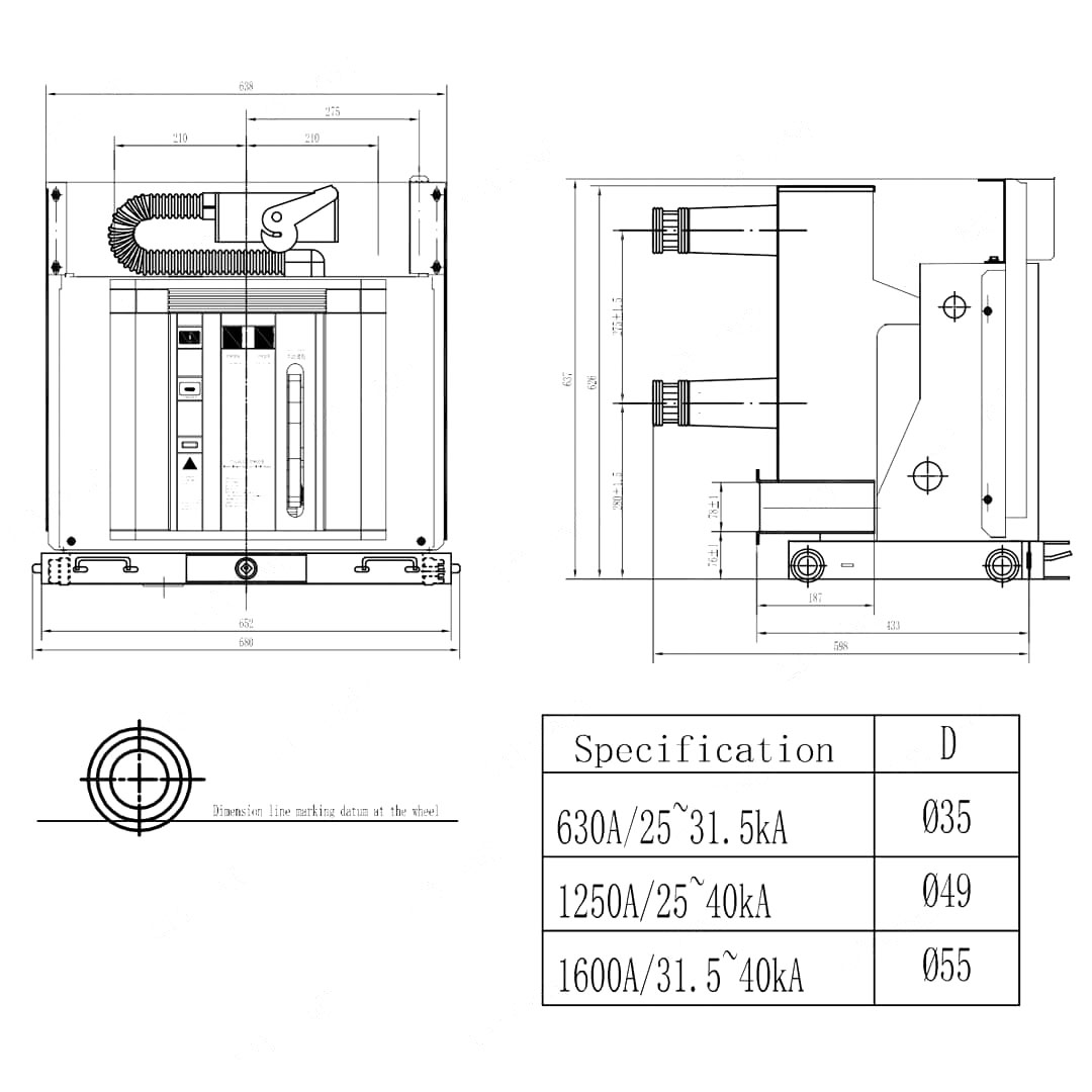 · প্রধান সার্কিট প্রতিরোধের: ≤50μω (630A), ≤45μω (1250a), ≤35μω (1600-2000A), ≤25μω (2500a এবং তার বেশি)
