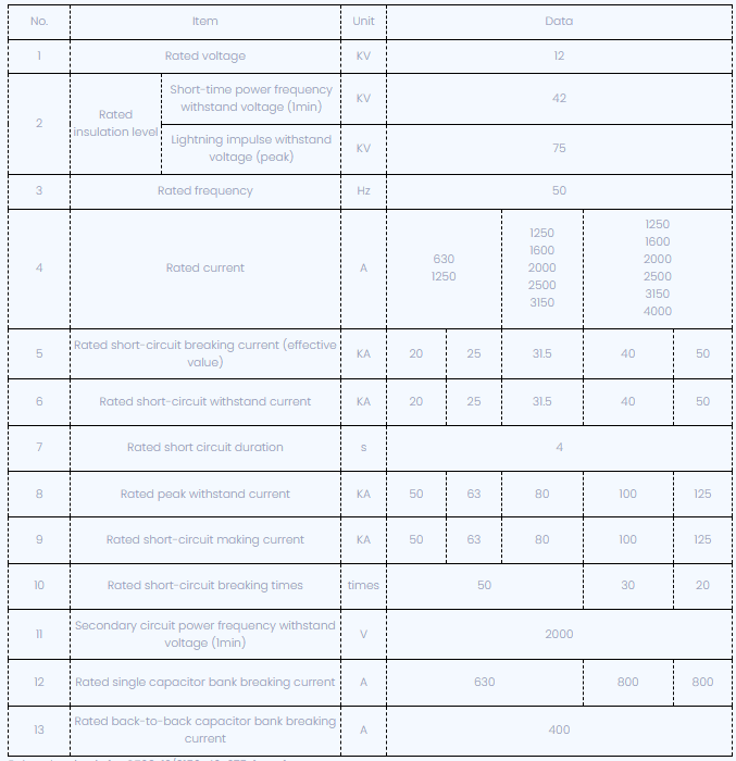 CT68-12 ভ্যাকুয়াম সার্কিট ব্রেকারের বৈশিষ্ট্য