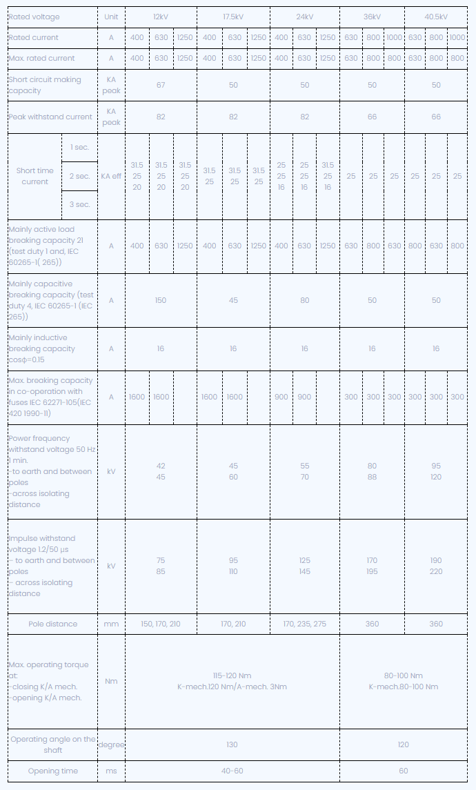 Al চ্ছিক আনুষাঙ্গিক এবং বৈশিষ্ট্যগুলির মধ্যে রয়েছে বিভিন্ন অপারেটিং হ্যান্ডলগুলি, একটি মোটর অপারেটর, সহায়ক সুইচ, একটি শান্ট ট্রিপ ডিভাইস, ফিউজ বেসগুলি, যান্ত্রিক ফিউজ ট্রিপিং, গ্রাউন্ডিং সুইচ, মেকানিকাল ডোর ইন্টারলকিং এবং কী ইন্টারলকিং।
