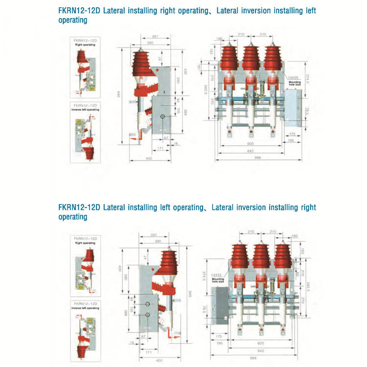 FKN12-12D সিরিজের এয়ার-ব্লাস্ট আইওড ব্রেক সুইচ এবং FKRN12-12D সিরিজের এয়ার-ব্লাস্ট লোড ব্রেক সুইচ-ফিউজ কম্বিনেশন যন্ত্রপাতি হল নতুন সিরিজের সুইচগিয়ার রেট 12kV-এর তিন-ফেজ বৈদ্যুতিক বন্টন ব্যবস্থায় প্রযোজ্য, যা সুরক্ষা এবং নিয়ন্ত্রণের যন্ত্র হিসেবে কাজ করে, cwitch এবং ওভারহেডের জন্য ট্রান্সফর্ম করতে পারে। এই সিরিজগুলি বিশেষ করে গ্রামীণ, শহুরে টার্মিনাল সাবস্টেশন এবং প্রিফেব্রিকেটেড সাবস্টেশনের পাশাপাশি রিং নেটওয়ার্ক পাওয়ার সাপ্লাইতে প্রযোজ্য। FKN12-12D ভাঙতে পারে এবং Ioad কারেন্ট এবং ওভার-কারেন্ট করতে পারে। FKRN12-12D ভাঙতে পারে এবং ওভার-কারেন্ট লোড কারেন্ট এবং শর্ট-সার্কিট কারেন্ট (আইমিটেড কারেন্ট ফিউজ) তৈরি করতে পারে। এই পণ্য প্রভাব গঠন নান্দনিক চেহারা সঙ্গে বৈশিষ্ট্যযুক্ত হয়. নির্ভরযোগ্য ইন্টারলক এবং উচ্চ অন্তরক স্তর। স্প্রিং স্টোরেজ অপারেশন পদ্ধতিতে, চালু/বন্ধ গতি জনশক্তির প্রভাব থেকে মুক্ত। চাপ-নির্বাপণের জন্য, অন্তরক কভারের ভিতরে বৈদ্যুতিক চাপ-নির্বাপণের জন্য, মুক্ত গ্যাস স্পার্কিংয়ের সময় ঘটে যা পর্যায় এবং পর্বের মধ্যে অন্তরক স্তরের পৃথিবীতে অবতরণ ঘটায় না। ইনসুলেশন কভার ক্ল্যাপবোর্ড বিদ্যুতায়িত অংশকে আলাদা করে এইভাবে রিং প্রধান ইউনিটের সুরক্ষা গ্রেড বৃদ্ধি করে। তামা-টংস্টেন যোগাযোগ এবং প্রধান যোগাযোগ নির্ভরযোগ্য পরিবাহিতা এবং দীর্ঘ জীবন নিয়ে আসে। এই পণ্যটি সহজ রক্ষণাবেক্ষণ এবং পরিচালনার পাশাপাশি নির্ভরযোগ্য কর্মক্ষমতার কারণে শব্দ খ্যাতি অর্জন করে। এটি IEC62271-105 এর সাথে সঙ্গতিপূর্ণ।