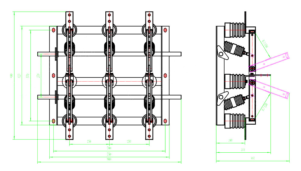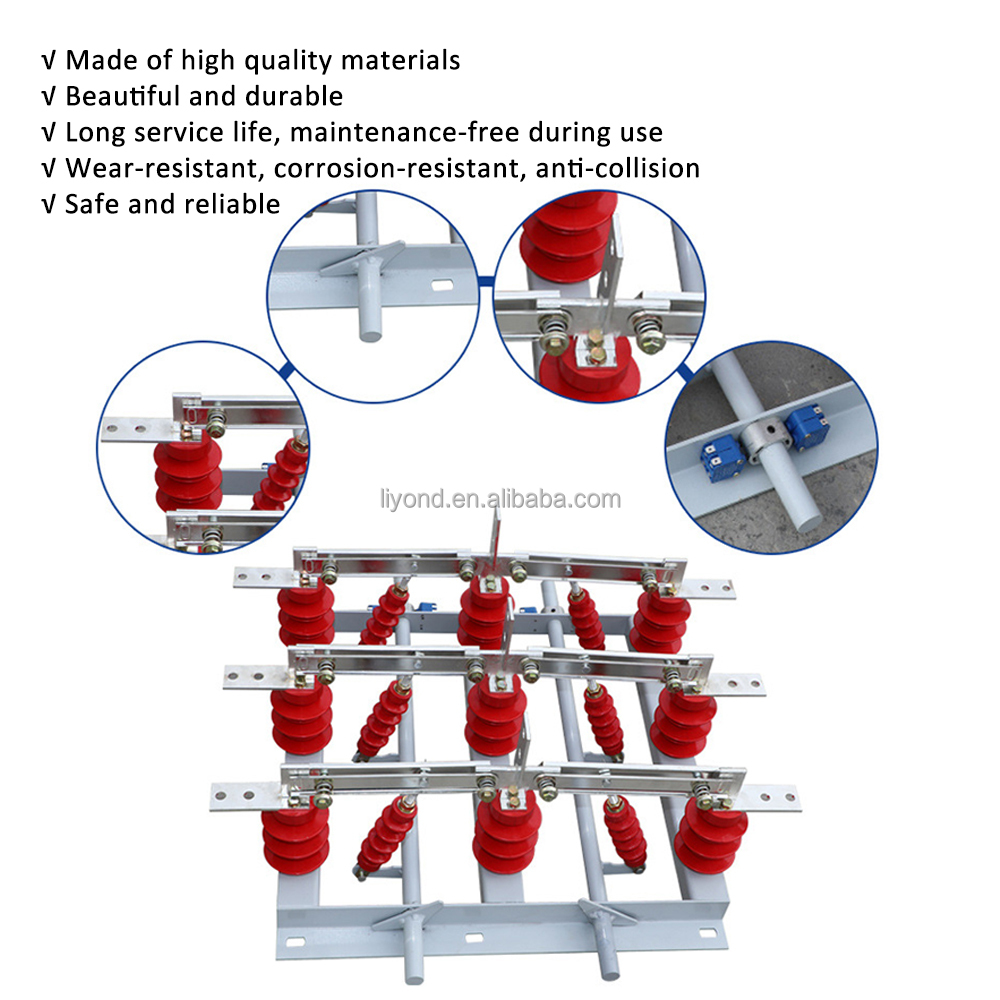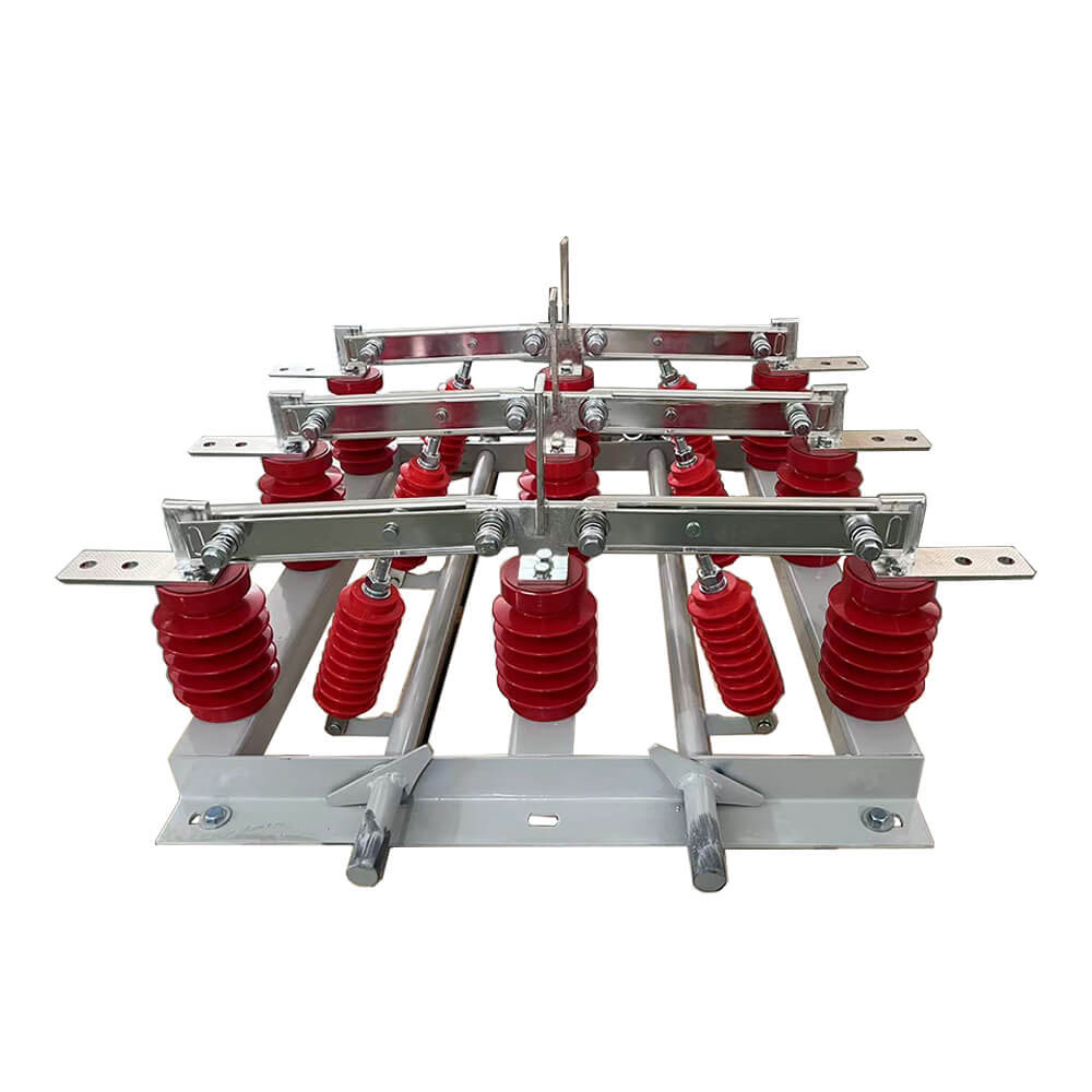 GN19-12/400, 630, 1000, 1250 টাইপ সংযোগ বিচ্ছিন্ন স্যুইচ এর পরিবাহী অংশ প্রতিটি পর্বের জন্য দুটি স্তম্ভ ইনসুলেটর দ্বারা বেসে স্থির করা হয়। (জিএন 19-12 সি/400, 630, 1000, 1250 ধরণের একটি স্তম্ভ অন্তরক এবং একটি চীনামাটির বাসন কেসিং ইনসুলেটর রয়েছে)) তিনটি পর্যায় সমান্তরালে ইনস্টল করা হয় এবং পরিবাহী অংশটি যোগাযোগের ছুরি এবং যোগাযোগধারীদের (বা পরিবাহী রডস) স্ট্যাটিক পরিচিতি নিয়ে গঠিত। যোগাযোগের ছুরির প্রতিটি পর্ব টাই ইনসুলেটরের মাঝখানে সংযুক্ত থাকে, টাই ইনসুলেটর টাই হয় এবং সংযুক্ত স্পিন্ডলের গোড়ায় ইনস্টল করা হয়। স্পিন্ডলটি সংযোগকারী রড (ব্যবহারকারী-সরবরাহিত) এবং সিএস 6-1 ধরণের হ্যান্ডেলটির মাধ্যমে চলমান প্রক্রিয়াটির সাথে সংযুক্ত রয়েছে। সংযোগকারী যোগাযোগের ছুরিটি দুটি স্লটেড কপার প্লেট সমন্বয়ে গঠিত, যা নীচের তাপমাত্রা কমিয়ে দেওয়ার জন্য যোগাযোগের ছুরির তাপ অপচয় হ্রাস ক্ষেত্রটি কেবল বাড়িয়ে তোলে না, তবে যোগাযোগের ছুরির যান্ত্রিক শক্তিও উন্নত করে, যাতে স্যুইচের গতিশীল স্থিতিশীলতা উন্নত হয়। যোগাযোগের ছুরির এক প্রান্তটি একটি বল্ট (শের গাড়ি) দ্বারা যোগাযোগের ব্লকে (বা পরিবাহী রডে) মাউন্ট করা হয়। চৌম্বকীয় লকিং প্লেট ইনস্টলেশন সংস্পর্শে GN19-12/1000, 1250, আরও চৌম্বকীয় লকিং প্লেটের উদ্দেশ্যটি হ'ল যখন দুটি খাঁজ যোগাযোগের ছুরি বাড়ানোর জন্য একটি বৃহত শর্ট সার্কিট কারেন্টের মধ্যে | আকর্ষণ GN19-12/400, 630 সংযোগ বিচ্ছিন্ন সুইচগুলির বর্তমানের মাধ্যমে একটি ছোট সীমা রয়েছে, সুতরাং চৌম্বকীয় লকিং প্লেট যুক্ত করার দরকার নেই।
