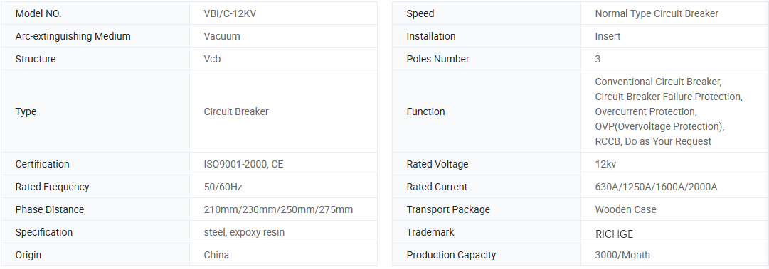 ভিবিআই -১২ মিডিয়াম ভোল্টেজ ভ্যাকুয়াম সার্কিট ব্রেকার হ'ল এক ধরণের ইনডোর মিডিয়াম ভোল্টেজ স্যুইচ সরঞ্জাম যা 50Hz/60Hz থ্রি ফেজ এসি 12 কেভি রেটেড ভোল্টেজ সহ সুইজারল্যান্ডের এবিবি কর্পোরেশনের প্রযুক্তিকে একত্রিত করে এবং চীনে বিকাশ লাভ করে। পণ্য স্ট্যান্ডার্ড জিবি 1984 এবং আইইসি 62271-100 মেনে চলে।