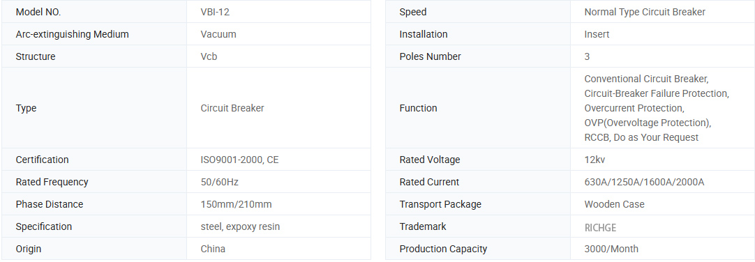ভিবিআই ইনডোর হাই ভোল্টেজ ভ্যাকুয়াম সার্কিট ব্রেকার হ'ল একটি তিন-পর্যায়ের এসি 50/60Hz, 12 কেভি এবং 24 কেভি ইনডোর সুইচগিয়ার রেটেড ভোল্টেজ, শিল্প ও খনির উদ্যোগ, বিদ্যুৎকেন্দ্র এবং সাবস্টেশন, বৈদ্যুতিক সুবিধা এবং ঘন ঘন অপারেশন স্থানের জন্য নিয়ন্ত্রণ এবং সুরক্ষা। স্প্রিং অপারেটিং মেকানিজম এবং সার্কিট ব্রেকার ইন্টিগ্রেটেড গ্রহণ করে, ডিজাইনটি একটি নির্দিষ্ট ইনস্টলেশন ইউনিট হিসাবে ব্যবহার করা যেতে পারে, বিশেষ অগ্রিম প্রক্রিয়াও সজ্জিত করা যেতে পারে, ব্যবহৃত হ্যান্ডকার্ট ইউনিটের রচনা। কিছু মূল সার্কিট পুরো সলিড সিল পোস্টটি ব্যবহার করতে পারে, ছোট সার্কিট ব্রেকারগুলি অর্জনের জন্য, উচ্চ নির্ভরযোগ্যতা, রক্ষণাবেক্ষণ-মুক্ত, বাড়ির মধ্যে Kyn28aan এবং অন্যান্য হ্যান্ডকার্ট স্যুইচ ক্যাবিনেটের সাথে সজ্জিত হতে পারে স্থির এক্সজিএন সুইচগিয়ারের সাথেও ব্যবহার করা যেতে পারে।