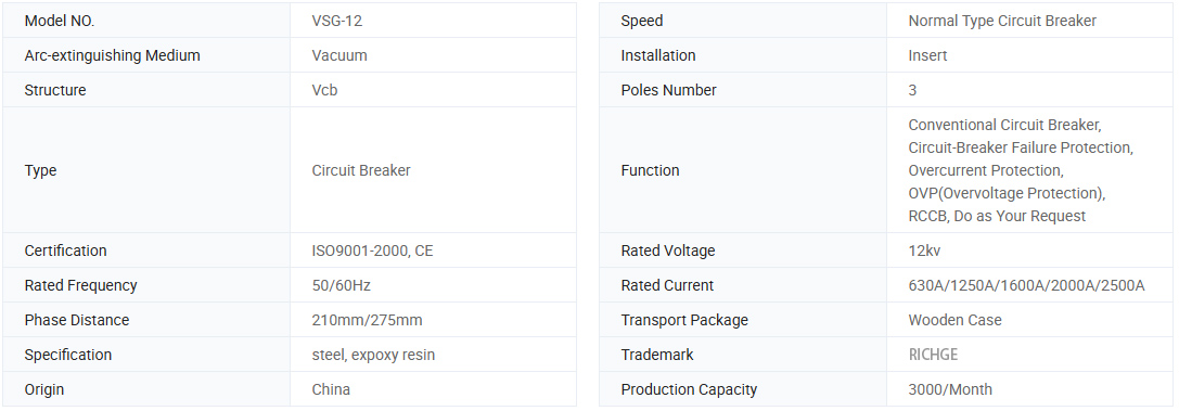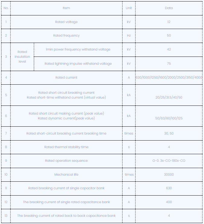 ভিএসজি -12 1250 এ ভ্যাকুয়াম সার্কিট ব্রেকারের মূল বৈশিষ্ট্যগুলি